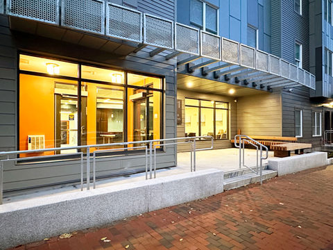 The building is designed to be fossil fuel-free and was built to Passive House Performance standards.